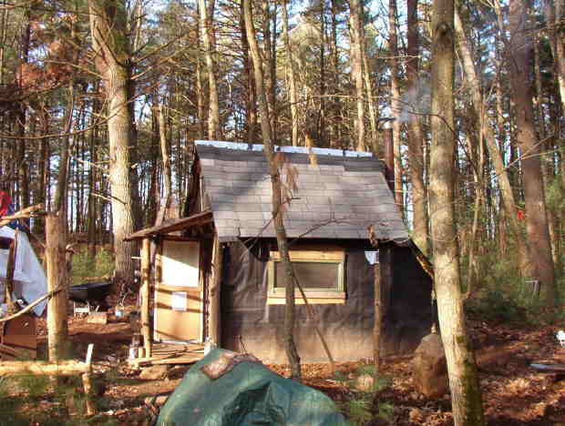 I took this photo on Christ mass morning of 2006, The sky was clear an there was no snow on the ground. I worked the entire day outside in the 60 degree weather without a jacket. The cabin started out as a post and beam one room ruff shanty, but me being me, the kind of guy who has to improve upon what he has already done, I ended up doubling the size of the living space. |