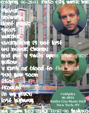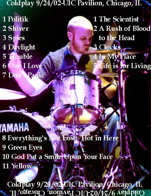 If you have designed a cover or have found a different cover for a show please email it to coldplaycovers@yahoo.com or contact me at that email address directly. I am not trading so do not contact me for trades through there .