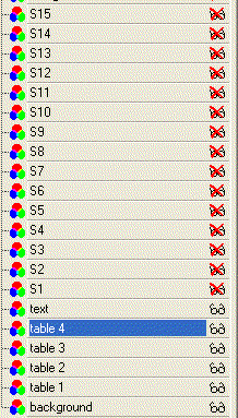 1)Close off all layers except the background layer..table 1...text. light 1..