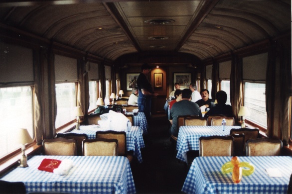 This is the interior of the parlor section of the Missouri River showing the banquet table, the parlor area, and the rear observation platform. I wanted to take more photos of the car interiors but I was almost of out film.