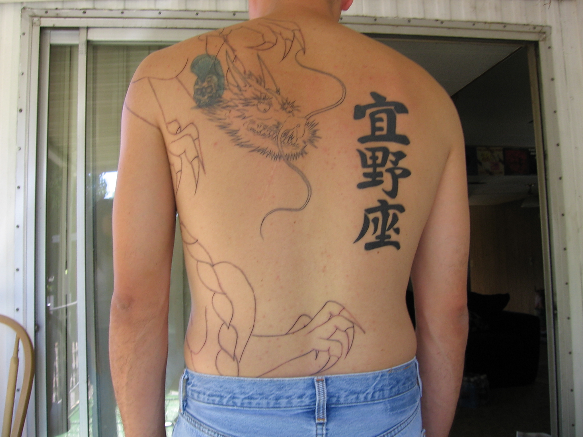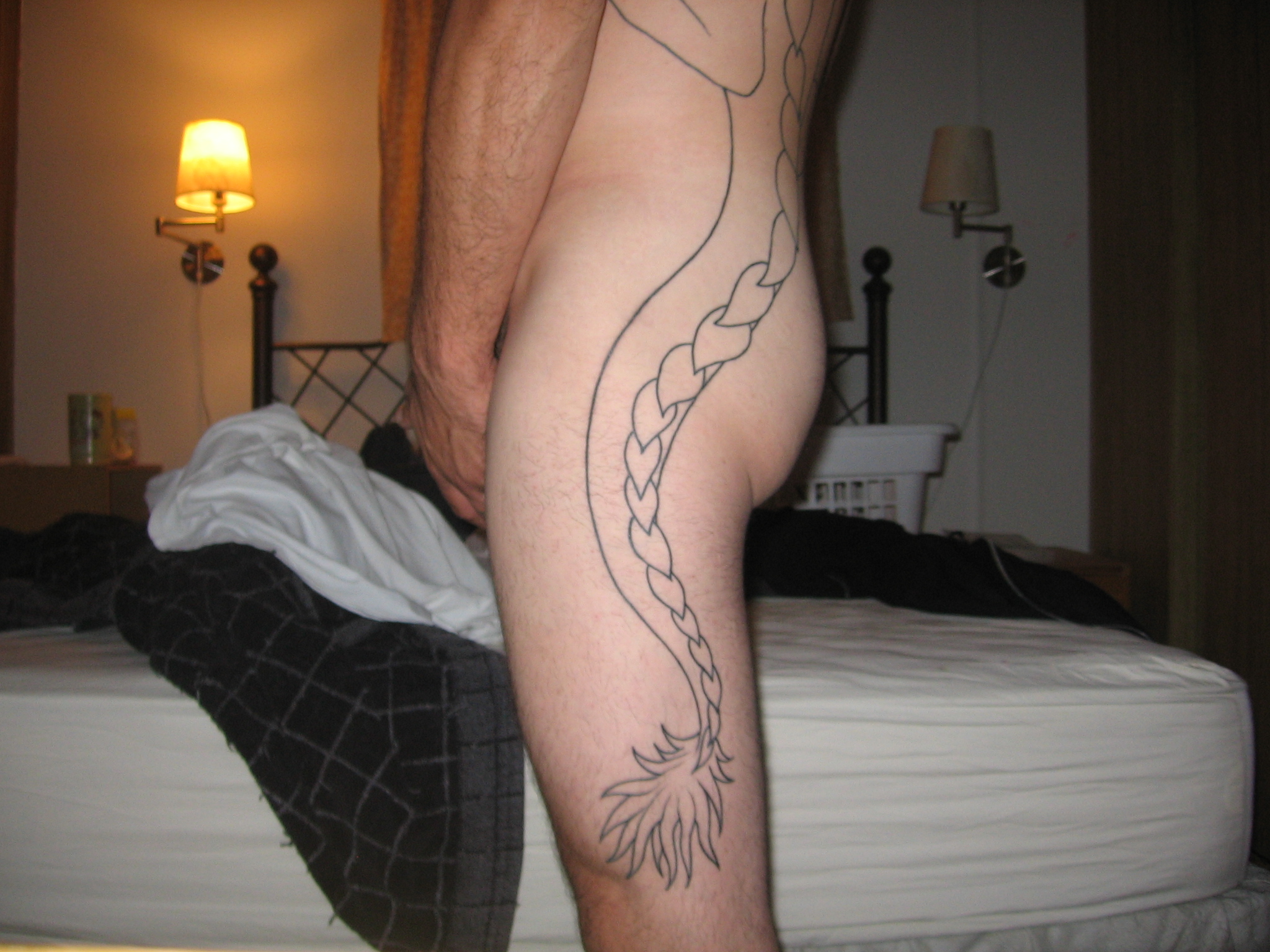 Then I had the bottom part of the dragon put on. I don't have pics of it from that moment. I then had the upper and lower inked with a wider needle and started the scales.