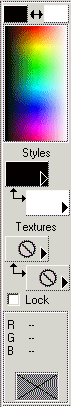 styles: The black one in this picture is your "stroke colour" (change this it also changes your foreground colour)