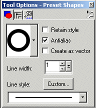 Draw out one of the pre-set's either a box or a circle (remember for a circle have antialias checked and hold down shift for perfect shape.
