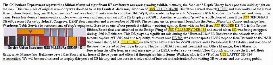 the gallant men of the DE/DER's and their sacrifice for our nation during WW II and Cold War.