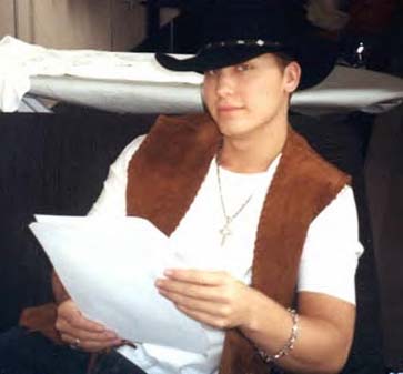 It's Halloween, and Lance has decided to go as a cowboy. Yeehaw y'all! Time to go a'ridin'! No, but I love his facial expression. My friend actually does that a lot. Then she goes,"Yo. Whatzup," in a kinda Joey Tribiani voice. But female.