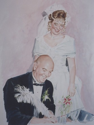 No need to have just the faces done for a lovely wedding portrait. What about a fun, favorite, or sentimental glimpse into the day. This bride had a beautiful bouquet which was not in the picture. I added a few of the flowers from the bouquet into her hand, just as a reminder!