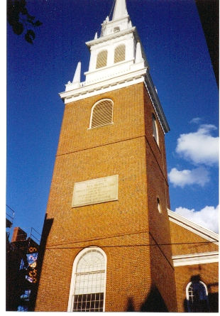 During the summer of 2000, right after my high school graduation, my mom and I took a trip to Boston and Cape Cod. We had an incredible time together! We saw beautiful, historical buildings, cemeteries filled with famous Revolutionary War figures, and the Atlantic Ocean. Above, you can see one of my favorite historical sites; it is the Old North Church in Boston. Historical figures including Paul Revere have been to this church and spoken from its pulpit.