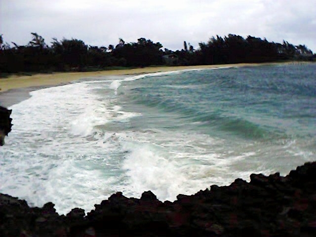 Pounders Beach is a nearby beach that has rougher water... And when the tide is a bit higher, the water crashes on that big rock thing. (It's much cooler than I just described it.) |