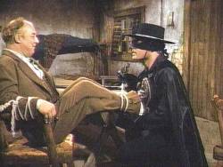 (Zorro has knocked the bandit out and starts to free Bernardo.) |