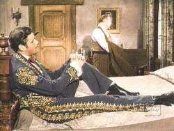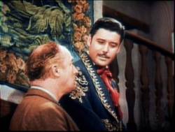 (Diego has come to see Seņor Verdugo about the most recent robbery. Anna Maria refuses to let him see her father.) next back Table of Contents |