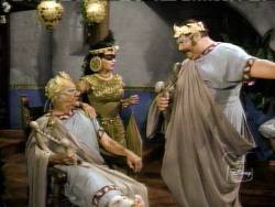 (The Governor and Sergeant Garcia turn up at the fiesta wearing Emperor Nero costumes. The Governor shows his displeasure.) |