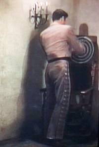 (The fortune teller has convinced the Sgt. that someone is out to get him. He sees Bernardo following him and locks Bernardo outside of the cuartel. Diego gets angry when he asks the Sergeant where Bernardo is.) next back Table of Contents |