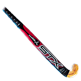 The stick has a curved head, is rounded on one side and is flat on the left-hand