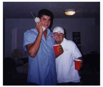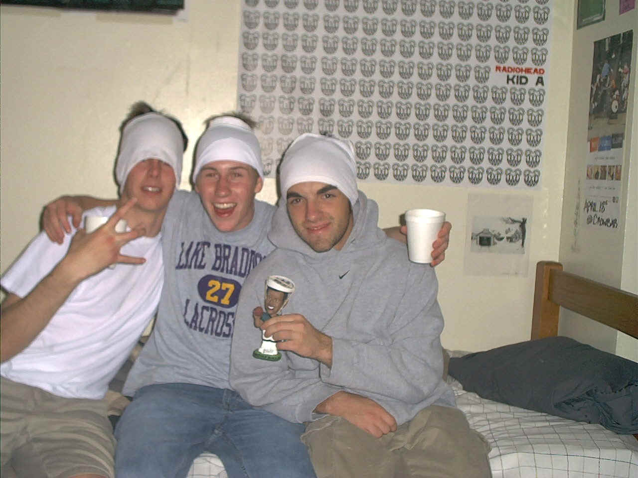 Johnny M, Me, and sleazy Slezak with stupid looking shirts on our heads.
