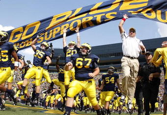 The Michigan Wolverines football program represents the University of Michigan in college football at the NCAA Division I Football Bowl Subdivision (formerly Division I-A) level. Michigan has the most all-time wins and the highest winning percentage in college football history. The team is known for its distinctive winged helmet, its fight song, its record-breaking attendance figures at Michigan Stadium, and its many rivalries. They have 11 National Championships and have appeared in 39 bowl games. Led by head coach Rich Rodriguez, the Wolverines will take on the Mississippi State Bulldogs in the Gator Bowl on New Year's Day at 1:30 p.m. Click on the picture at the bottom to view the team's roster.
