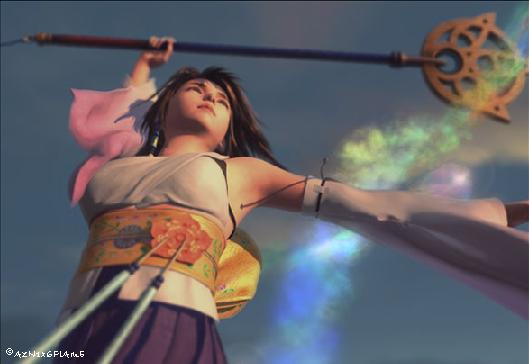 [Yuna] She is the daughter of High Summoner Braska. She is on her quest to find the final Aeon and defeat Sin with the Final Summoning. She is accompanied by her guardians. Upon her quest, she meets up with her cousin, Rikku. During the Final Summoning, she is to be sacrificed. Which means she dies upon calling the Final Aeon [the Aeon takes her life in order to defeat Sin].