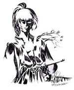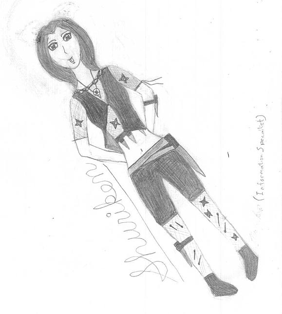 Artist: Information_specialist Character: Shuriken Genre: Pencil drawing Comments: You don't know who Shuriken is? You mean to say that you haven't read Darkness Before Dawn? You're kidding me?! Well, I'll give you some background info. In the fanfic, written by Sentora, Shuriken is an original character who happens to be Soujiro's... employer... among other things. The character is created by Sentora and I love her so much, I volunteered to draw her. Now, exactly how deep is her relationship with Soujiro? You'll have to read the fic to find out.