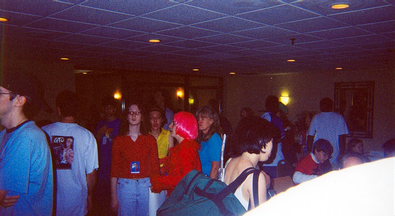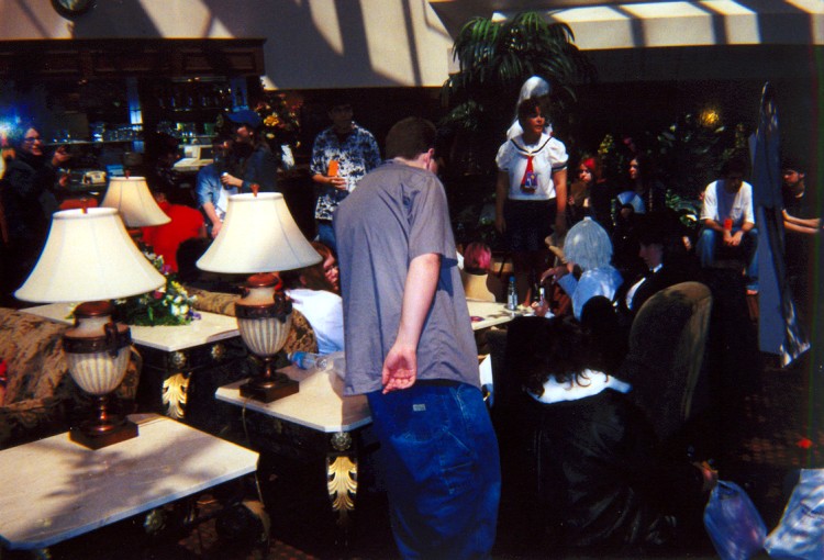 Anime Mid-Atlantic 2004. Here we are back in the old Holiday Inn Select again! Heh. At least nobody got lost and, like, nobody was SO FREAKIN' HOT. The convention was mostly moved to the upstairs since there was more room. What used to be the Dealers' Room in 2002 was used for karaoke and mass events like the rave. It was a good change in that regard.