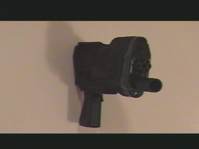 Here's a view ofthe twin muzzles, one a large bore, and the other a much smaller "gatling gun" type arrangement. i think i will get some brass tubing to put in the "gatling barrels" to help bring them out more.