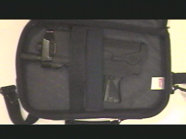here's the gun in it's concealed carry case (a necessity for infiltrating corporate strongholds)