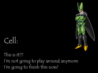 -- Super Sayan Trunks vs the All Mighty Cell.