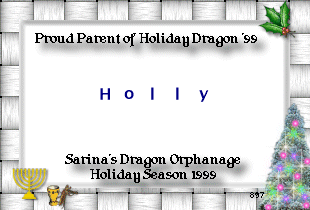 This little adorable dragon is my new millenium dragon holly. Isn't she adorable? To get your own click her or her birth certificate.