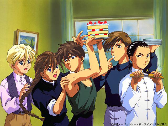 The GW Boys and a cake. Even Trowa looks really cute in this one! Well I mean don't take that the wrong way like he isn't cute but he looks..friendly cute?? Ahh you know what I mean! Hehe ^^;