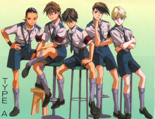 The GW Boys in uniform thingies...a pretty cute pic...you wonder about Heero and Duo though...