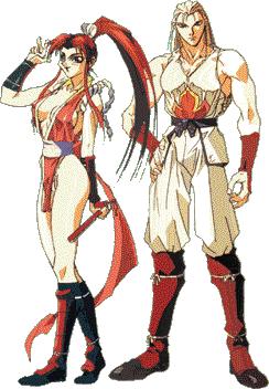 This is Mai Shiranui. And this is Andy Bogard. She's hot, she kicks Brother of Terry. Andy ass, and she has that The coolest looking moves, whole dumb, blonde and is a more offensive acting thing going on. fighter than his brother, It's kind of hard not But the lack of control is to like her. Her what keeps Andy behind. specialty fighting Andy's Trademark move is the weapons are razor "shanagan." This move is very like fans. Similar to the burn knuckle, (thats definatly cool!) but this one uses Andy's elbow.