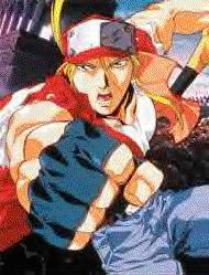 Terry Bogard would have to be one of my top favorite anime characters. He is stong, quick, tough as hell, and at the same time can be friendly, and compassionate. Terry's trademark move is his "burn knuckle" attack, And his Special attack is the "power geiser." Terry is the main character of the fatal fury series, and all of the characters look up to him. (except for the bad guys.) And Above all, after seeing the motion picture, you just have to feel sorry for him. I sure as hell do!! SYLIA!!!!!!!!