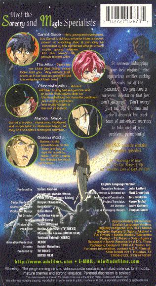 Get ready for a totally new kind of fantasy adventure! The great and benevolent goddess Big Momma has dispatched the Sorcerer Hunters on an epic saga of mayhem and destruction. Tasked with saving the peasants of the Spooner Continent from the dreaded scourge of sorcery, they'll use any method, fair or foul, to accomplish their goal! Led by drooling babe-chaser Carrot Glace and dueling dominatrix sisters Chocolate and Tira Misu, this mighty force will beat the forces of darkness into submission! And when muscle-bound exhibitionist Gateau Mocha and Carrot's brother Marron get into the act, the action goes from red-hot to volcanic. It's the animated series that will forever redefine the meaning of the phrase "Military Discipline"!