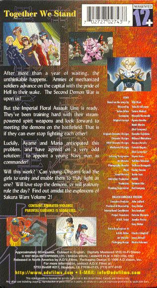 Welcome to the Sakura Wars Episode List Section. Below is a pic of the front and back cover, and a brief description.