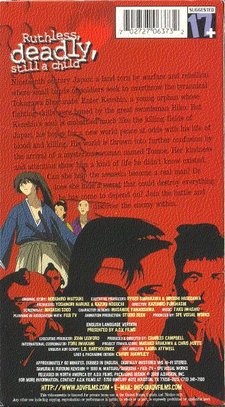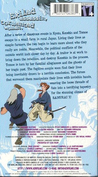Welcome to the Samurai X Episode List Section. Below is a pic of the front and back cover, and a brief description.