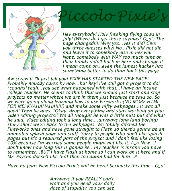 I'M BACK!!!!!! KYAHAHAHA!!!!!!!!! (Evil laugh is copyright to Square, Sakaguchi-san, FFVII and Scarlet.  What a bitch. ;P)
