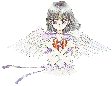 "Chinmoku no hoshi, do sei wo shugo ni motsu, hametsu to tanjou no senshi, Sailor Saturn!"