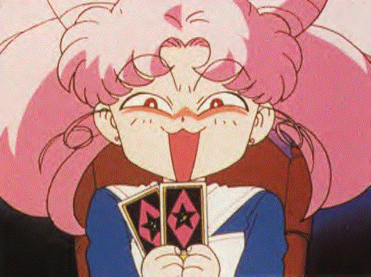 Chibi-Usa, holding playing cards and looking evil(recent SMS episode!)