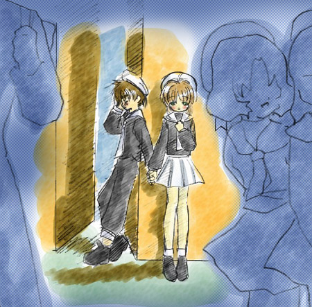 Another E+T pic for the fans out there. ^-^ Syaoran held Sakura's hand when nobody is looking. ^-^ Makes you feel warm all over.