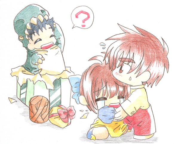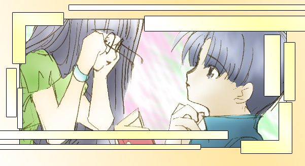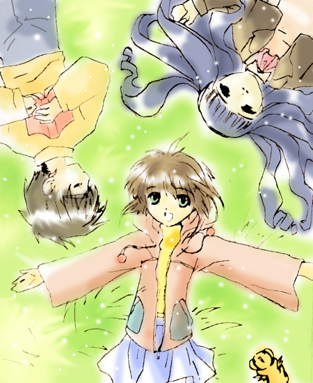 Shows the gang lying down on the soft grass. ^-^ Since Sakura's birthday's on April Fool, I did a mix version. ^-^A series of photos with Syaoran saying "o-e-a-i-o" (One of the lyrics in Leon Lai's song) ^_^ Swinging in the Garden: At least that was what I tried to draw. Wanted it to look a little old fashion. t seems that a lot of people liked this...^_^U Tomoyo in fantasy land. Kotori from "X", tried to make her clothes look like kimono. -_-'
