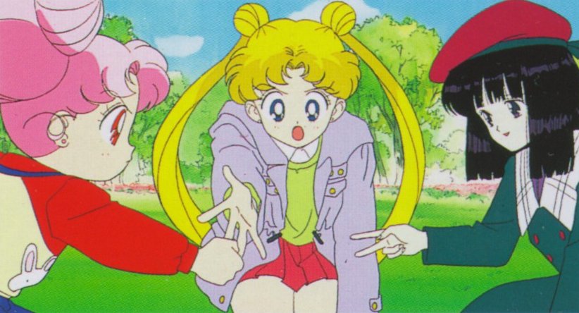 Chibi Usa: Will you guys knock it off 1, 2,3! (Rini puts out a fist, Serena a 5 and