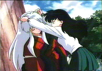 Kagome, a young school-girl in modern day Japan, one day falls into an ancient well in her family's shrine, and finds herself magically transported to Japan in its feudal ages. There, she has to face, and work with, Demons and everything else creepy. Inu-Yasha, her faithful (ha!) sidekick tries to kill her several times in the beginning. The show is a bit hard to explain, you kinda have to see it for yourself. Basically, the story gets started when Kagome and Inu-Yasha have to protect the "Jewel of the Four Souls" or "Shikkon no tama" from all sorts of living and not so living baddies. One day, Kagome accidentally shatters this sought after jewel, and then there were many many peices to seek out and protect. Needless to say, Inu-Yasha the dog demon was not very happy about this... Ok, so I know I'm leaving a lot out. Oh yeah, and I don't own this series either. There may be spoilers in here, but I've been selective and careful, so its doubtful. Still, be warned if you see something I didn't know was a spoiler.