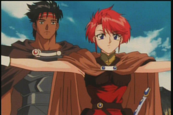 To the south of Alecrest lies the war-torn island of Lodoss...the accursed land. The Hero's War marks the beginning of the original series in which our main character, Parn, a free knight, embarks. He is joined by a Shamanist elf named Deedlit, and a sorceror named Slayn, among others. That's as much of a summary as you're gonna get for now, because I've been watching too much of the OVA series and I don't want to give anything away.