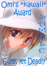 Omi's Cute, yet Deadly Award: This award was made for all the kawaii pages out there. I am convinced one day the warm fuzzies will take over the universe. Pages dedicated to kawaii anime/magna characters, or with lots of images that make the average veiwer go "Aww!" would be the nominees here.(I warn you however, I *loathe* Chibi-Usa.)