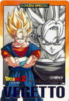 Vegeta and Goku combine in 2 different forms. The first I'm gonna list is Vegetto. Vegetto is my favorite because i just think its better, and it looks cooler. Vegetto is the form they use against Boo. The main differences between this form the the Gogeta form is that the Gogeta form is time limited. Vegetto uses the Fusion Earrings to combine Vegeta and Goku into Vegetto, and this form is not limited on how long it will hold. However this form can't go SSJ level 4.