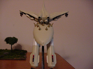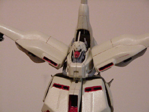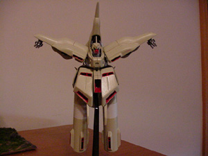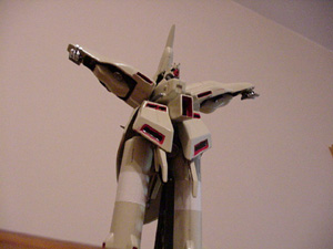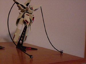 This is the bandai 1/550 alpha azieru. I did a modification on the shoulder canons so I can attach wires to them, but the wires dont stay up by themselves. And you'll have to do a careful job painting the landing gear feet or else the paint might break it when its moved.