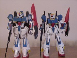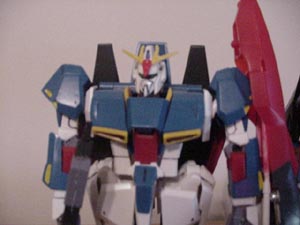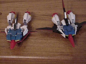 This is a pre-built model kit of z gundam. I have it standing next to the hg zeta in one picture. This kit is very messed up, its fat, the wings in jet mode are practically invisible because they're so small and the nose is small too. And I added a few details with paint and marker.