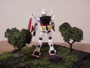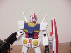 This is a very messed up looking kit. Its head is all big, and its shoulder were to small. So what I did was I took some scrap vinyl pieces from a gundam alex kit and glued them on the shoulders to make the kit look a little better.