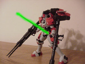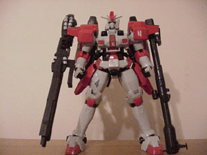 The tallgeese is my favorite mobile suit from wing. I had the idea of makeing a new tallgeese in my head for a while. I took the bazooka, back-pack and the parts that go on the wires from the black zaku kit, and added an extra ZZ gundam head-V to the head of the tallgeese II. I cut off the wires that were on the mega cannon, and re-placed them with rubber hoses and slipped the beed things on. I also did the same thing to connect the wires to the back-pack and the body. And to be able to put the back-pack on the back I drilled a hole in it so the peg on the back of the back-pack can fit right in. After the painting I took "4" decales from z-plus and rx-79. I also made yet another space picture in the photo shop, and drew on the beam sabre for that glowing effect.