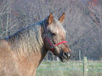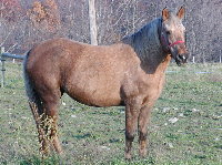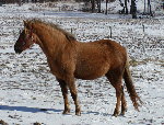 Here is Morgan! She's a hard one to figure out, a little scared of people when she came. Now she is the first to walk up to you when you are in the pasture. She is a Big mare 15'2". She is bred this year.