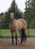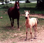 Below is Sky's Sire Daddy and Mommie! (Skye too!)Tioga's Spitfire (buckskin) X Northernridge Donna (chestnut)