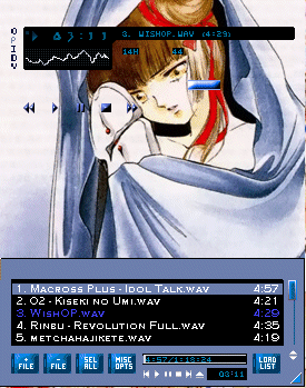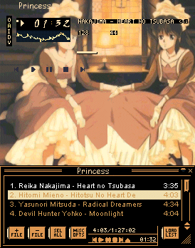 Ah, doesn't the art just remind you of the seventies? Too bad the manga's from '91...Anyhow, I had issues deciding where to put it (English title? Japanese? Italian?), but as you can see, I settled for the title that seemed most likely to be known. Speaking of titles, the skin's is taken from Cutey Honey's image song in "Flash", and means "tomorrow's door". Seeing as the image is a big ol' spoiler for the happy ending, it seemed appropos. Once again, I'm not fond of the playlist, but heck, it can always be closed. Oh, and to end this babble, the actual series title means "legend of the rainbow". I'll shut up now.